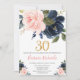 rosa och marinblått blommigt 30års födelsedag inbjudningar