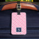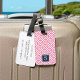 Ta dig ur bagageanspråket med vår chic i monogrammat bagagemärke, med ett modernt geometriskt mönster i klar rosa och vit. Lägg till det första monogrammet på framsidan i kontrasterande marinblått och lägg till kontaktuppgifterna för fullt på baksidan. Tittar du för detta på en annan produkt eller i ett annat färg? Kontakta mig via länken "Fråga den här designern" på den här sidan.