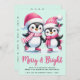Rosa och Mint Merry och Bright Penguin jul Julkort