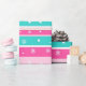 En glatt stark rosa- och vattenmynta strimlade helgdag med lekfullt vitt snöflingor och snö