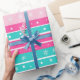 Rosa och Mint-Vågrät Stripe Snowflake Presentpapper