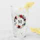 Monogram glastumör med vattenfärgad blommigt och rosa, burgundi och marina blommor med lush grönt löv och bladaccenter. Anpassa tumören genom att lägga till ditt monogram. Blommigtens tumlare gör en underbar personlig-gåva!
