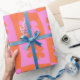 Rosa- och Orange-blommor för utcheckad Warped Retr Presentpapper