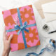 Rosa och Orange Flowers på Mid Century Scallop Presentpapper
