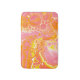 Coral och orange häller ut målningsceller som snurrar abstraktens konstbadmat.
