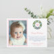 Glad jul vykort med utrymme för ett monogram med en bokstav och ett familjefoto. I en avvikelse från "traditionella" julfärger innehåller designen uppiggande rosa och orangea accenter. De akvarell elementen på framsidan (krans) och baksidan (girlang) var ursprungligen handmålade av mig i akvarell på 100% bomullspapper innan de skannades och arrangerades/stilades digitalt.