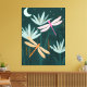 Midnight Pond – Illustrering av rosa och orangea trollsländor på canvas