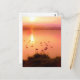 Rosa och persiko-sjö-solnedgång vykort