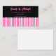 Rosa och vitt lodrät rand vid grund, med ett svart färg överst, gör ett vackert affärskort för en skönhetare eller skönhetsalonägare. Baksidan är helt vit med utrymme för avtalade tider eller kundbelöningar.