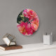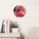 Ett foto av blommigt konst av djup rosa och vit stripe-ro mot mörk grönt bakgrund.