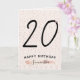 Trendigets chic 20-årskort har modern bakgrund för ro guld och rosa, nummer 20 och namn på framsidan. Anpassa med meddelandet inuti.
