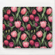Den här muspekaren har vibrerande rosa och röda tulpanblommor som står mot mörkens kontrasterande bakgrund och lush grönt löv. Det djärva blommönstret är elegant och sofistikerat och det är perfekt för alla som kärlek är pulserande men ändå finslipad. Den svarta bakgrunden skapar en skarp kontrast mot den ljusa rosan och röda tulpaner som förstärker tulpanernas levande färg och skapar den design som framträder i den bedövande mönster som fångar öga. Tulips förknippas ofta med kärlek och passion och beundras för sin enkelhet och elegans. I olika färg har de olika betydelser: röda tulpaner kan representera djupt kärlek, medan rosa tulpaner kan betyda lycka och tillgivenhet.