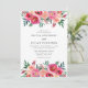 Bröllopsinbjudan med elegant- och vattenfärgsfärgad blommigt blommar upp och grund. Färger omfattar rosa, , röd och grön.