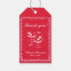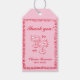 Rosa och röda retro-märkningar för bröllopspresenter med handritade detaljer