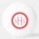 En roligt till pingpongklungande dam, ge till henne en uppsättning av dessa anpassningsbar med tre brev monogrammade bollar med en söt-skalopedcirkel i rött och rosa.