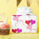 Rosa och röda hjärtballonger med knärör och rosett band mot vit bakgrund. Kan användas för årsdagar eller Alla hjärtans dag.