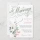 Skriptinbjudan till rosa och Sage Blommigt Elegant med typografi-bröllop. Den enkla utformningen av blommigten för elegant är perfekt för ett - och rosa-bröllop tema.
