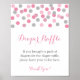 Använda vår rosa och silver faux glitter-skylt med visning av blöjraffel i duschen för att informera gästerna om var de ska lämna biljett. Var noga med att leta efter vår samordnande blöjstråle biljett som säljs separat. Observera att glitter är faux glitter och är en högkvalitativ grafik som kommer att vara en del av det som trycks och som görs till imic real glitter. Ingen riktig glitter ingår.