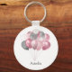 Nyckelkedja med en illustration av ett antal ballonger i rosa och silver grått färg.
