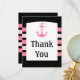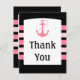 Nautiskt rosa och svart tackar dig att card med hjärta ankrar.