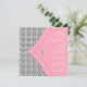Rosa och svart damask flicka dop inbjudningar