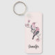Personligens nyckelkedja med en vattenfärgsmålning. 2 rosa och svart fåglar sitta vid träd gren med rosa blommar.