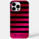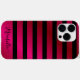 Skapa ett unikt telefonfodral för personlig med ett rosa och svart stripe-mönster. Rosa rand imiterar metalliskt yta. Med textmallen kan du enkelt anpassa telefonväskan med ditt namn.