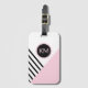 En contemporary popup-konturens geometriska mönster med en chic-vib, den här mode-bagagetaggen har vinklat svart rand och rosa färg med ett framträdande matchande runt ram kring ditt monogram. Anpassa med ditt önskade monogram så att du får en anpassningsbar bagagetagg till användan i alla dina resor. Du kan föra in affärskortet i bakrutan med din personliga information. (Obs! Vi har ett affärskort i vår butik med samma utformning!)