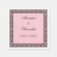 Detta rosa och svart mönster har en geometrisk utformning med parets datum namn och bröllop skrivet. Beställ din i dag! Napkin Design: WedingsbyRhoadie Geometric-bakgrund: http://www.etsy.com/shop/AMBillustrations