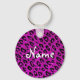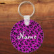 Rosa och svart glitter leopardtryck nyckelring. Personliggör med namn. Söt flickaktig födelsedagspresent med exotiskt djurfläcks mönster.