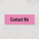 Det här affärskortet för rosa i miniatyr säger "kontakta mig" på affärskortets framsida. På baksidan finns fyra linjer svart visning för ditt namn och kontaktinformation, t.ex. ditt mobila nummer, e-postens adress och/eller social medieferens. All text kan redigeras eller tas bort.