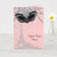 Inbjudan till rosa och svart maskerad och tackkort med mask och Eiffeltornet i Paris. Du kan enkelt anpassa denna vackra Parismaskerad-design för ditt evenemang genom att lägga till dina detaljer i önskad typsnitt, färg och formulering. Du kan också ändra bakgrundsfärgen.