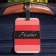 Modern rosa och svart, stripe bagagetagg. Anpassa märkrn med ditt namn eller första namn. Teckensnittet stil och färg kan anpassas till ditt eget stil.