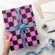Rosa och svart rutig flaggamönsterinpackning presentpapper