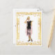 Njut av den här Art Deco-inspirerade serien av illustrationer från vintage mode. Mode-vykortet i vintage har en tidigt 1920-talermodell i svart sleeve med rosa flytande dem och nacke scarf.