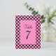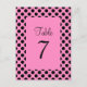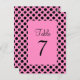 Svarta polka punkt mönster på rosa med rum för ett bordsnummer. Du kan anpassa och radera "Bord" i ord och centrera numret.