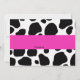 Starta din firande-höger med den här trendiget rosa och svart inbjudan till utskrift av ko med ett shock rosa-band över mitten. Perfekt för den lilla diva som vrider en! Det finns ett vitt bubbelformat centrum med en svart trim. Informationen om party är skriven i den vita märkrn. Ta en titt på de många andra produkterna och designerna på den här raden. © cupcakties