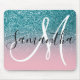 Rosa och Teal Glitter Ombre Monogram Musmatta