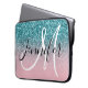 Rosa och Teal Ombre Glitter Monogrammed Laptop Fodral