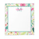 Det här söta anteckningsblocket har ett söt blommönster i nyp, teals, gröntar och gulter på vitt. Anpassa monogrammet med ditt val av namn och början.
