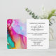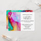 Bröllopsinbjudan med en finurlig, konstnärlig abstrakt design. Akvarellmålning med färger som blandas och rinner samman och skapar ett vackert flödande mönster.