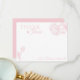 Ett rosa och vitt tacksamhetskort med rosa blomsterdekorationer och diskret fjärilsdekoration. Personlig text i nedre högra hörnet