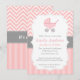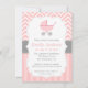 Rosa och vit Chevron, Barnvagn, Flicka Shower Inbjudningar