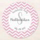 Rosa och vit chevronmonogramfest underlägg papper rund