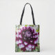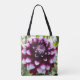 Ditt val av snyggt till påsen eller korsningspåsen med ett övertryck som innehåller fotobilden av en fantastisk, mörk rosa och vit dekorativ Dahlia-blomma. En underbar, blommigt design! Markera din tote-väska storlek och stil.