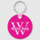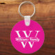 Rosa och vit | Enkel familjens Namn Monogram Nyckelring