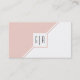 affärskort med rosa och vit modern geometrisk arkitektur med monogram. På framsidan finns två diagonala rand, en rosa och en vit som skiljer kortet åt i två trianglar.