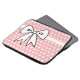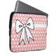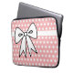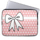 Ett sött rosa och vitt prickigt mönster och en stor rosett ger denna datorväska en retrostil. Denna datorväska är bra för kvinnor, flickor, tonåringar, skola, arbete, högskola, en present osv...Designen är från originalkonst.
