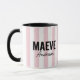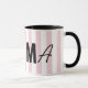 Rosa och vit rand personlig, modernt monogram mugg