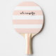 Den här pingpongpaddeln i snyggten har rosa och vit rand och ditt namn i modern svart kalligrafi.